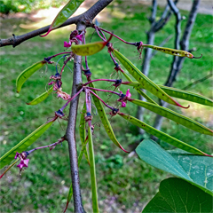Ende Mai haben sich an den befruchteten Blüten bereits Fruchtschoten mit darin liegenden Samenkörnern entwickelt.
