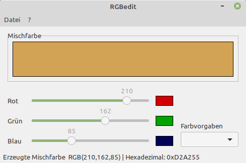 Schon seit einiger Zeit stelle ich einen einfachen RGB-Editor zur Erzeugung einer Mischfarbe aus den drei